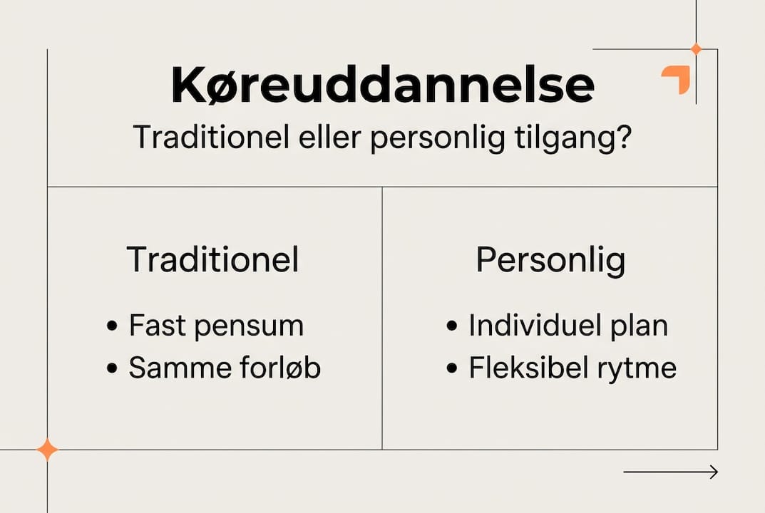 Professionelt tip: Spørg direkte, når du kontakter en køreskole: "Hvordan tilpasser I undervisningen til den enkelte elev?" Svaret afslører meget om skolens pædagogiske tilgang.
